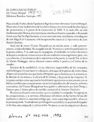 El lenguaje estético [artículo] / Luis Droguett Alfaro. Atenea. -- no. 465-466, 1992, p. 365-367 .