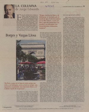 Borges y Vargas Llosa [artículo] / Jorge Edwards. La Segunda (Diario : Santiago, Chile)-- nov. 26, 2010, p. 19 .