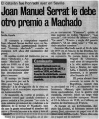 Joan Manuel Serrat le debe otro premio a Machado [artículo] / Efe. Las Últimas Noticias (Diario : Santiago, Chile)-- jul. 27, 2000, p. 47. .