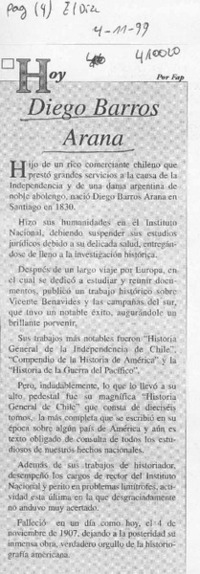 Diego Barros Arana [artículo] Fap El Día (diario : La Serena, Chile)-- nov. 4, 1999, p. 4 .