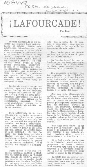 Lafourcade! [artículo] / Fap. El Día (diario : La Serena, Chile)-- dic. 16, 1981, p. 3. .