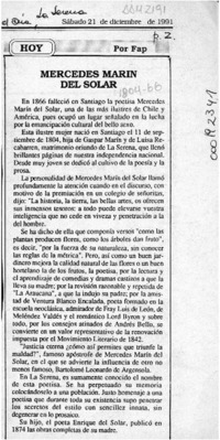 Mercedes Marín del Solar [artículo] / Fap. El Día (diario : La Serena, Chile)-- dic. 21, 1991, p. 2. .