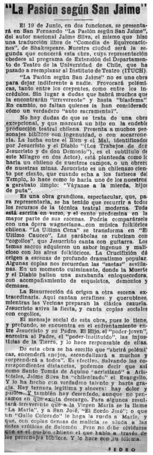 La pasión según san Jaime [artículo] / Fedro. La Región (San Fernando, Chile)-- mayo 6, 1969. .