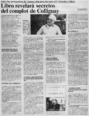 Libro revelará secretos del complot de Colliguay [artículo] / Lucy Bennett. La Segunda. -- feb. 24, 1988, p. 16 retr. .