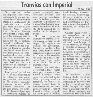 Tranvías con Imperial [artículo] / Filebo. Las Últimas Noticias (Diario : Santiago, Chile)-- ene. 11, 1985, p. 3. .