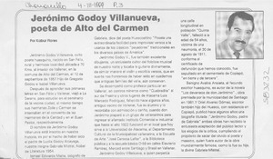 Jerónimo Godoy Villanueva, poeta de Alto del Carmen [artículo] Kabur Flores Chañarcillo mar. 4, 1999, p. 3 retr. .