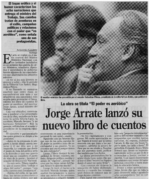 Jorge Arrate lanzó su nuevo libro de cuentos [artículo] / Alejandra Gajardo. La Epoca. -- mayo 16, 1995, p. B11 retr. .