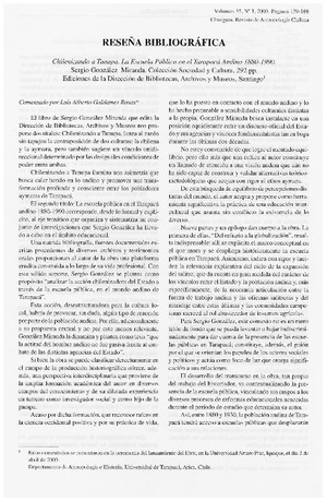 Reseña bibliográfica [artículo] / Luis A. Galdames R. Antropología Chilena (Revista : Arica, Chile)-- Año 35 :no. 1 (2003) p.159-166. .