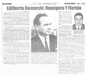 Edilberto Domarchi: Flamígero y florido [artículo] / Jaime Gatica Jorquera. El Lector (Diario : Linares, Chile)-- mayo 15, 2005, p. 15. retr. .