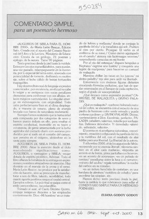 "Augurios de Sibila para el hombre 2000" [artículo] Eliana Godoy Godoy Safo n° 66 (sept. oct. 2000) p. 13 .