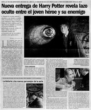 Nueva entrega de Harry Potter revela lazo oculto entre el joven héroe y su enemigo [artículo] / Rodrigo González M. La Tercera (Santiago, Chile)-- jun. 28, 2003. retr. .
