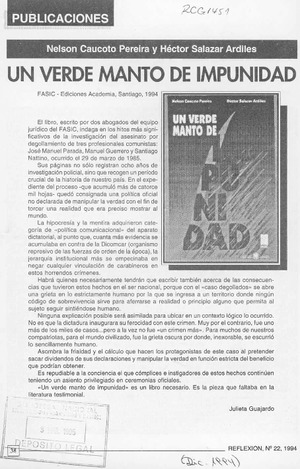 Un verde manto de impunidad [artículo] / Julieta Guajardo. Reflexión. -- no. 22 (dic. 1994) p. 38 il. .