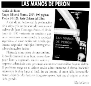 Las manos de Perón [artículo] / Gloria Guerra. Ercilla (Revista, Chile)-- no. 3220 (jul. 21, 2003) p. 79. il. .