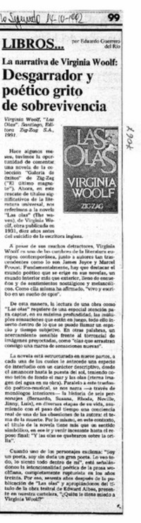Desgarrador y po´tico grito de sobrevivencia [artículo] / Eduardo Guerrero del Río. La Segunda (Diario : Santiago, Chile)-- abr. 14, 1992, p. 99. il. .