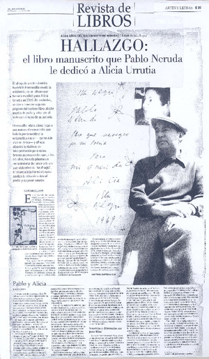 Hallazgo: el libro que Pablo Neruda le dedicó a alicia Urrutia [artículo] / Pedro Pablo Guerrero. El Mercurio (Diario : Santiago, Chile)-- jul. 6, 2008, p. E19-E20 (Revista de libros) .