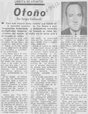 Otoño [artículo] / Sergio Guilisasti. La Segunda (Diario : Santiago, Chile)-- mar. 29, 1976, p. 2. retr. .