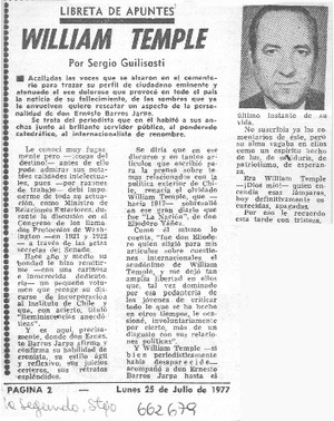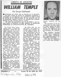 Willian Temple [artículo] / Sergio Guilisasti. La Segunda (Diario : Santiago, Chile)-- jul. 25, 1977, p. 2. retr. .