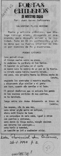 Poetas chilenos de nuestro siglo [artículo] / Juan Guixé Cañizares. Líder Provincial. -- mayo 26, 1990, p. 2. .