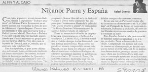 Nicanor Parra y España [artículo] Rafael Gumucio Las Últimas Noticias (Diario : Santiago, Chile)-- mayo 8, 2001, p. 43 retr. .