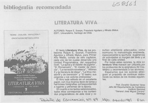 Literatura viva [artículo] / Osvaldo Gutiérrez Varas. Revista de Educación (Santiago, Chile)-- no. 89 (ago. 1981) p. 70. il. .