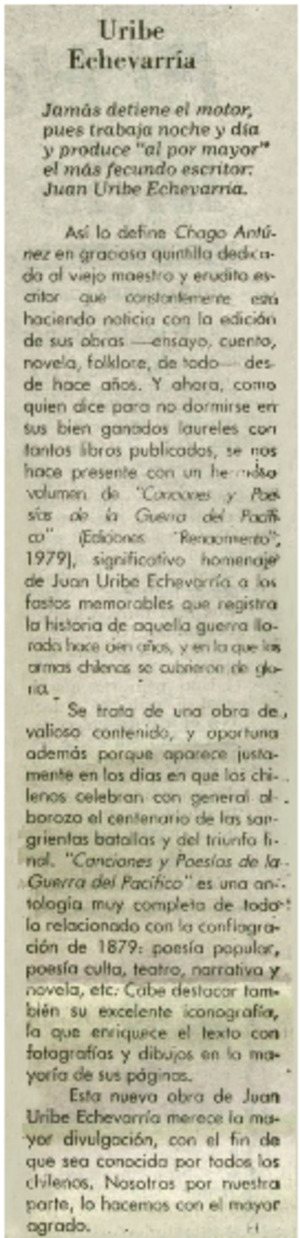 Autores chilenos - Canciones y poesías de la guerra del Pacífico - Uribe Echeverría, Juan