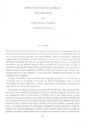 Sergio Fernández Larraín, historiador [artículo] Walter Hanisch Espíndola.
