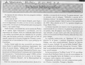 Fichero bibliográfico [artículo] / Carlos René Ibacache. La Discusión. -- ago. 14, 1995, p. 2. .