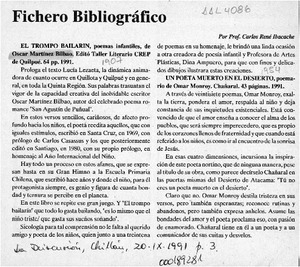 Fichero bibliográfico [artículo] / Carlos René Ibacache. La Discusión. -- sept. 20, 1991, p. 3. .