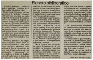"Cátedras paralelas" [artículo] / Carlos René Ibacache. El Sur (diario : Concepción, Chile)-- ago. 22, 1985, p. 2. .