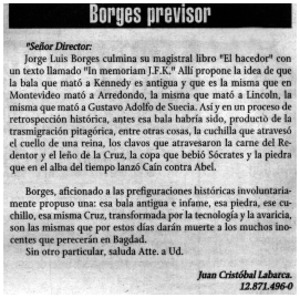 Borges previsor [artículo] Juan Cristóbal Labarca.
