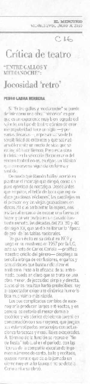 Jocosidad "retro" [artículo] / Pedro Labra Herrera. El Mercurio (Diario : Santiago, Chile)-- ene. 29, 2010, p. C16. .