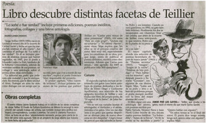 Libro descubre distintas facetas de Teillier [artículo] / Maureen Lennon Zaninovic. El Mercurio (Diario : Santiago, Chile)-- oct. 7, 2003, p. C12. retr. .