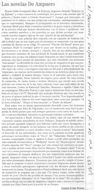 Las novelas de Ampuero [artículo] / Carlos León Pezoa. El Mercurio (Diario : Valparaíso, Chile)-- jul. 9, 1996, p. C10. .