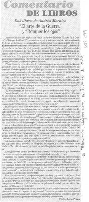 "El arte de la guerra" y "Romper los ojos" [artículo] Carlos León Pezoa.