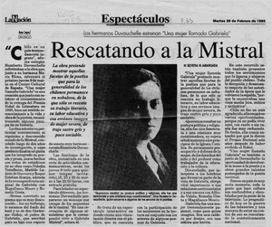 Rescatando a la Mistral [artículo] / Ana Lepe. La Nación. -- feb. 28, 1995, p. 35 retr. .