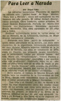 Para leer a Neruda [artículo] / Angel Lira. La Tribuna (Los Angeles, Chile)-- ago. 30, 1975, p. 3. .