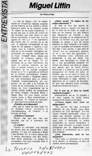 Miguel Littin [artículo] / Plinio el Viejo. La Tercera. -- mayo 20, 1990, p. 14 (segundo cuerpo) retr. .