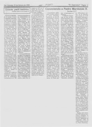 Conociendo a Pedro Mardones B. [artículo] / Lot. El Espectador. -- feb. 21, 1992, p. 2. .
