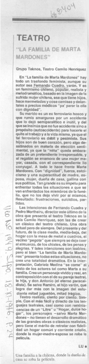 La familia de Marta Mardones" [artículo] Lu.