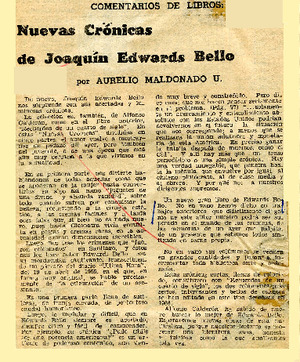 Nuevas crónicas de Joaquín Edwards Bello [artículo] Aurelio Maldonado V.
