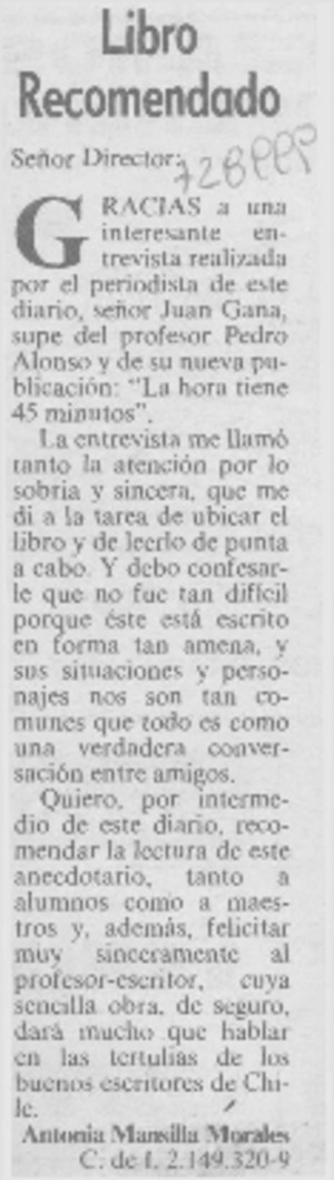 Libro recomendado [artículo] Antonia Mansilla Morales.