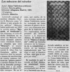 Las máscaras del ruiseñor [artículo] / Jorge Marchant. La Segunda (Diario : Santiago, Chile)-- jul. 12, 1985, p. 32. retr. .