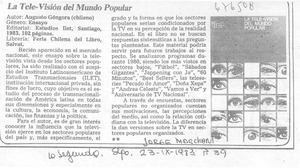 La tele-visión del mundo popular [artículo] / Jorge Marchant. La Segunda (Diario : Santiago, Chile)-- sept. 23, 1983, p. 39. il. .