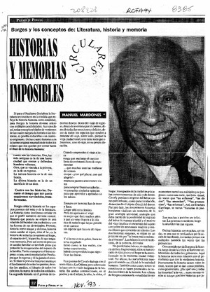Historias y memorias imposibles [artículo] / Manuel Mardones. Pluma y Pincel. -- no. 164 (nov. 1993) p. 32-33 retr. .
