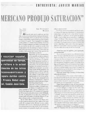 "El boom latinoamericano produjo saturación" [artículo] / Ana Rodríguez. Qué Pasa. -- no. 1343 (ene. 4, 1997) p. 74-76 retr. .