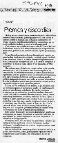 Premios y discordias [artículo] Andrés Marquez