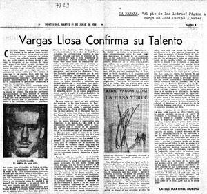 Vargas Llosa confirma su talento [artículo] / Carlos Martinez Moreno. La Mañana (Montevideo, Uruguay)-- jun. 21, 1966, p. 9. il., retr. .