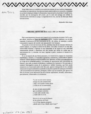 Miguel Arteche más allá de la noche [artículo] / Juan Antonio Massone. Millantún. -- no. 2 (dic. 1995) p. 35-36 .