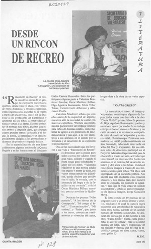 Desde un rincón de recreo [artículo] / M. B. G. Quinta Imagen. -- no. 128 (abr. 1995) p. 7. retr. .