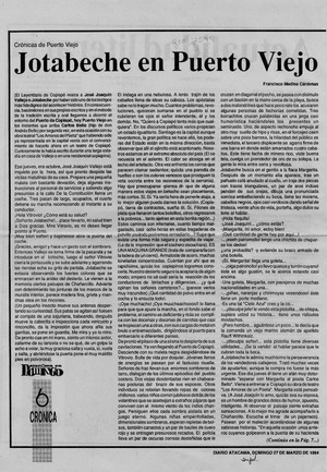 Jotabeche en Puerto Viejo [artículo] / Francisco Medina Cárdenas. Atacama. -- mar. 27, 1994, p. 6-7 (suplemento) .